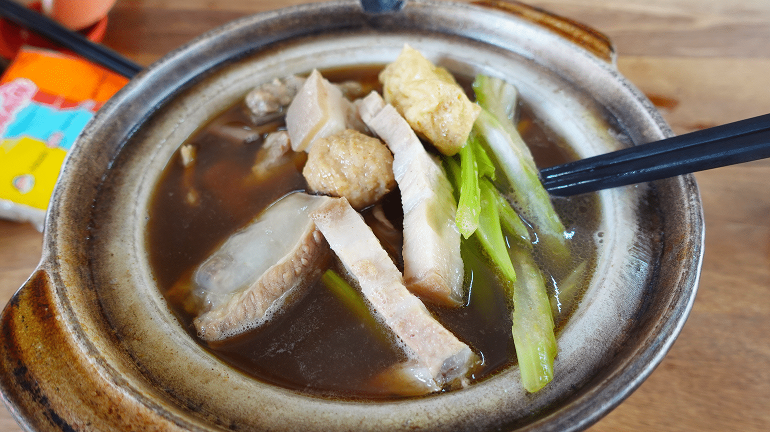Unlike the darker, herbal-style broth that you may find in Klang or other parts of Malaysia, the Teo Chew version is lighter in color and cleaner in taste. The broth is built from pork bones, garlic, and white pepper, simmered until every sip carries the essence of meat and spice without being overpowering. It is the kind of soup that warms you up instantly but does not weigh you down.