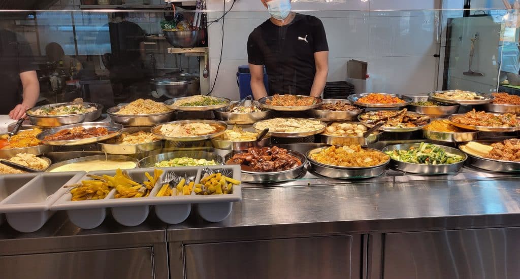 - In a mall or more “atas” (fancier) location, prices are slightly higher. Expect to pay $5–7 for one portion with pork or fish, but even then, it’s still way cheaper than most restaurant meals in Singapore.